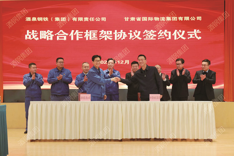 12月16日上午,甘肅國際物流集團(tuán)黨委書記、董事長王月成一行來訪酒鋼。集團(tuán)公司黨委書記、董事長陳得信與客人座談。甘肅國際物流集團(tuán)總經(jīng)理、黨委副書記李建軍,黨委常委、副總經(jīng)理劉軍勛;酒鋼集團(tuán)公司總經(jīng)理、黨委副書記程子建,黨委常委、副總經(jīng)理成東全參加座談。雙方企業(yè)簽署戰(zhàn)略合作框架協(xié)議。圖為簽約現(xiàn)場。